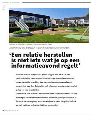 Inclusie is niet vanzelfsprekend, dat weet zorgorganisatie Ipse de Bruggen maar al te goed. De instelling biedt zorg aan kinderen, jongeren en volwassenen met een verstandelijke beperking. Meer dan voorheen nemen ze deel aan de samenleving, waardoor de instelling zich vaker moet verantwoorden voor het gedrag van haar cliënten. Zo ook in het Zuid-Hollandse dorp Zwammerdam.